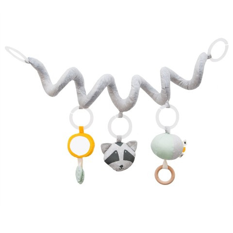 Met drie speelse elementen om te ontdekken, tovert deze activiteitenspiraal een lach op het gezicht! De spiraal krult mooi rond elke babystoel of autostoel. De drie speelgoedjes hebben elk andere eigenschappen, zoals een houten ring, knisperpapier, een spiegel en een belletje. Omdat alle elementen bevestigd zijn met een handige ringen, kan je ze ook makkelijk losmaken en apart gebruiken.
